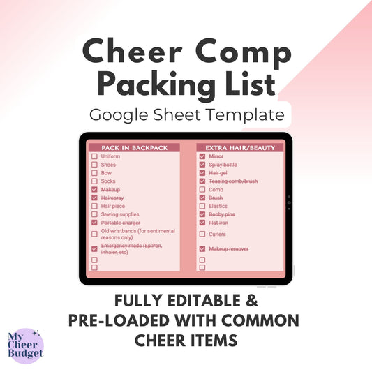 Cheer Comp Packing List, Rose Garden | Google Sheets Template
