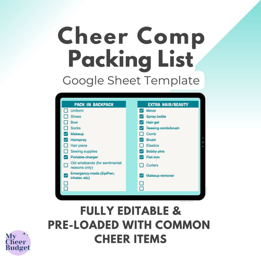 Cheer Comp Packing List, Ocean | Google Sheets Template