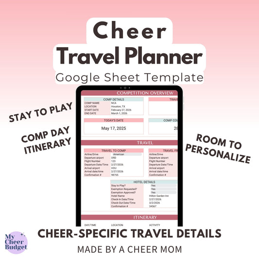 Cheer Essentials Bundle, Rose Garden | Fundraising + Budget + Travel Spreadsheets